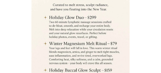 Curated to melt stress, sculpt radiance, and have you floating into the New Year: